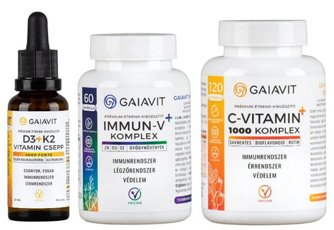 Gaiavit Immun Pajzs Trió - Teljes szerves Szelén, teljes szerves Cink, immunerősítő gyógynövények egyedülálló kombinációja, nagy dózisú C-vitamin és nagy dózisú D3-K2-vitamin komplexei, amelyek vírusos és bakterális fertőzések, meghűlés és kimerültség okozta immungyengülés esetén is kiváló támogatást nyújtanak.